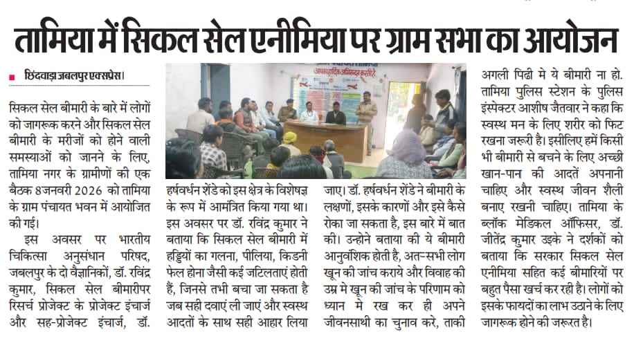 A seminar on Sickle Cell Disease was conducted under the guidance of Dr. P.N.K. Sharma and NIRTH Jabalpur. Experts emphasized the importance of early diagnosis, effective treatment, and raising awareness to combat this genetic disorder impacting tribal communities.